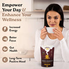 Une énergie plus douce. Avec seulement 59 mg de caféine par portion, vous bénéficiez d'une énergie plus stable tout au long de la journée, sans pics d'énergie intenses ni chutes brutales.