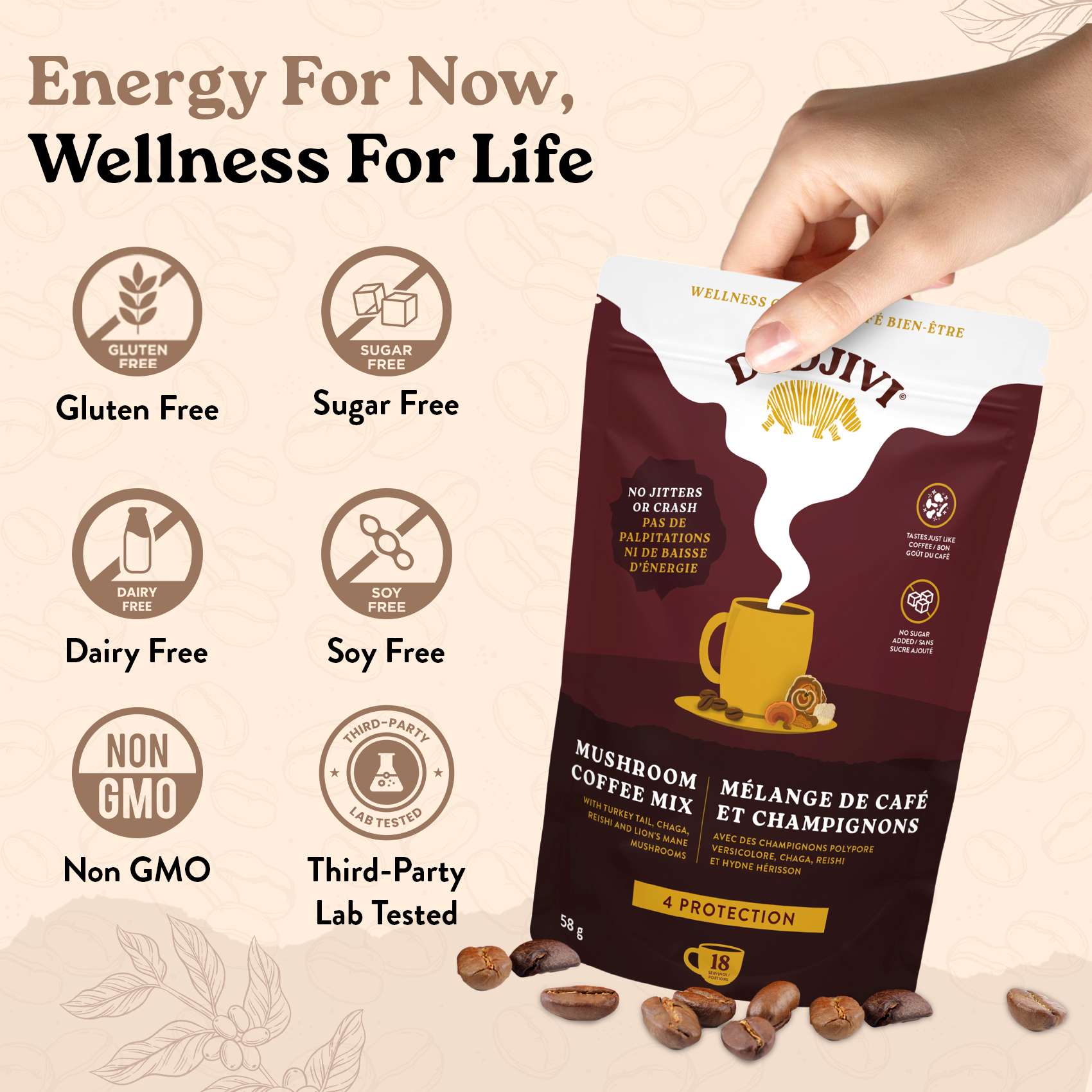Vous n'aimez pas le café ? Pas de problème. Incorporez le mélange Protection à votre smoothie, votre gruau ou votre yogourt pour profiter des mêmes bienfaits.